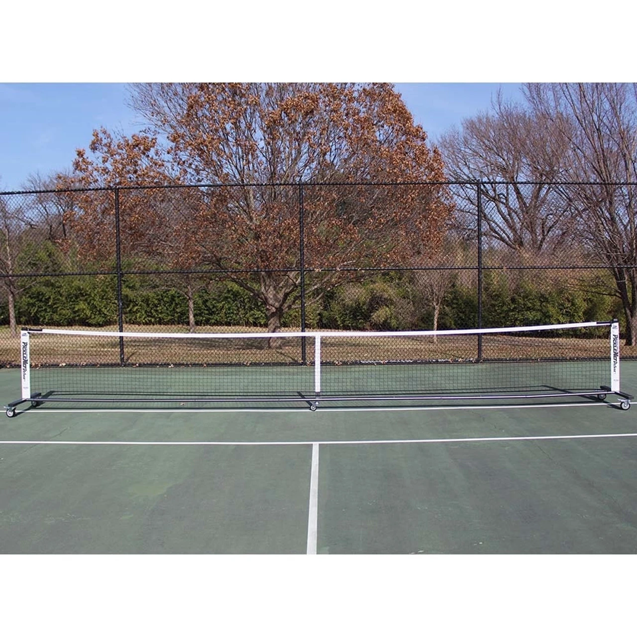 The Deluxe PickleNet Portable Net System is the more mobile version of the PickleNet Portable Net System thanks to its locking wheels on the bottom feet.