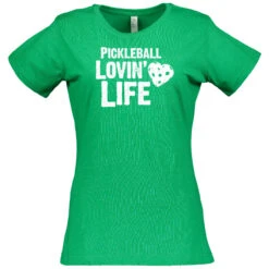 Does pickleball make your heart flutter? This sweet top will let you show others how much it means with a heart-shaped pickleball next to the words “Pickleball Lovin’ Life” in white, slightly weathered text. Placed centrally on the shirt and measures 7 by 9-1/2 inches. The short-sleeve shirt is 4.5oz cotton/poly blend (90/10 in Vintage Heather; 60/40 in all other colors) fine jersey knit with a topstitched ribbed collar. The style is semi-fitted with double-needle sleeves and bottom hem.