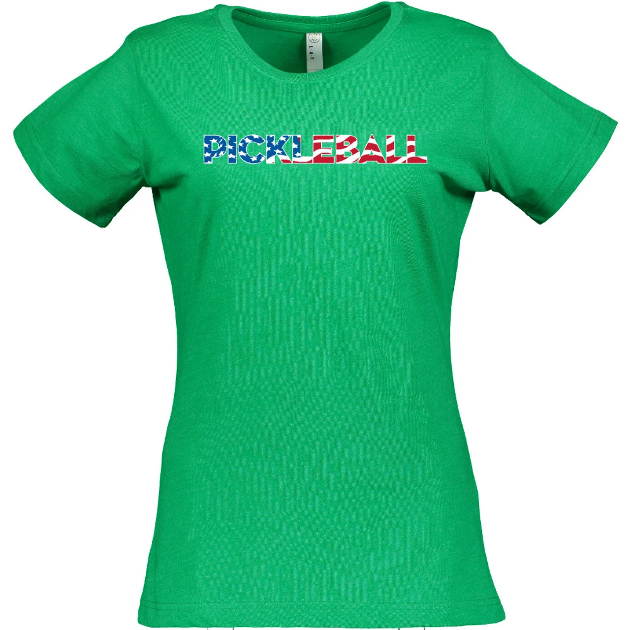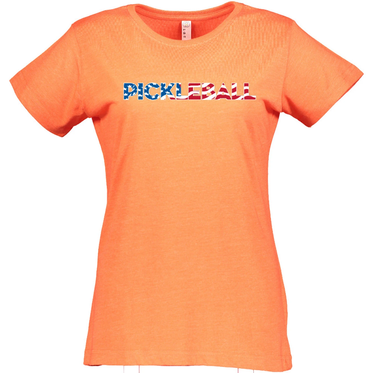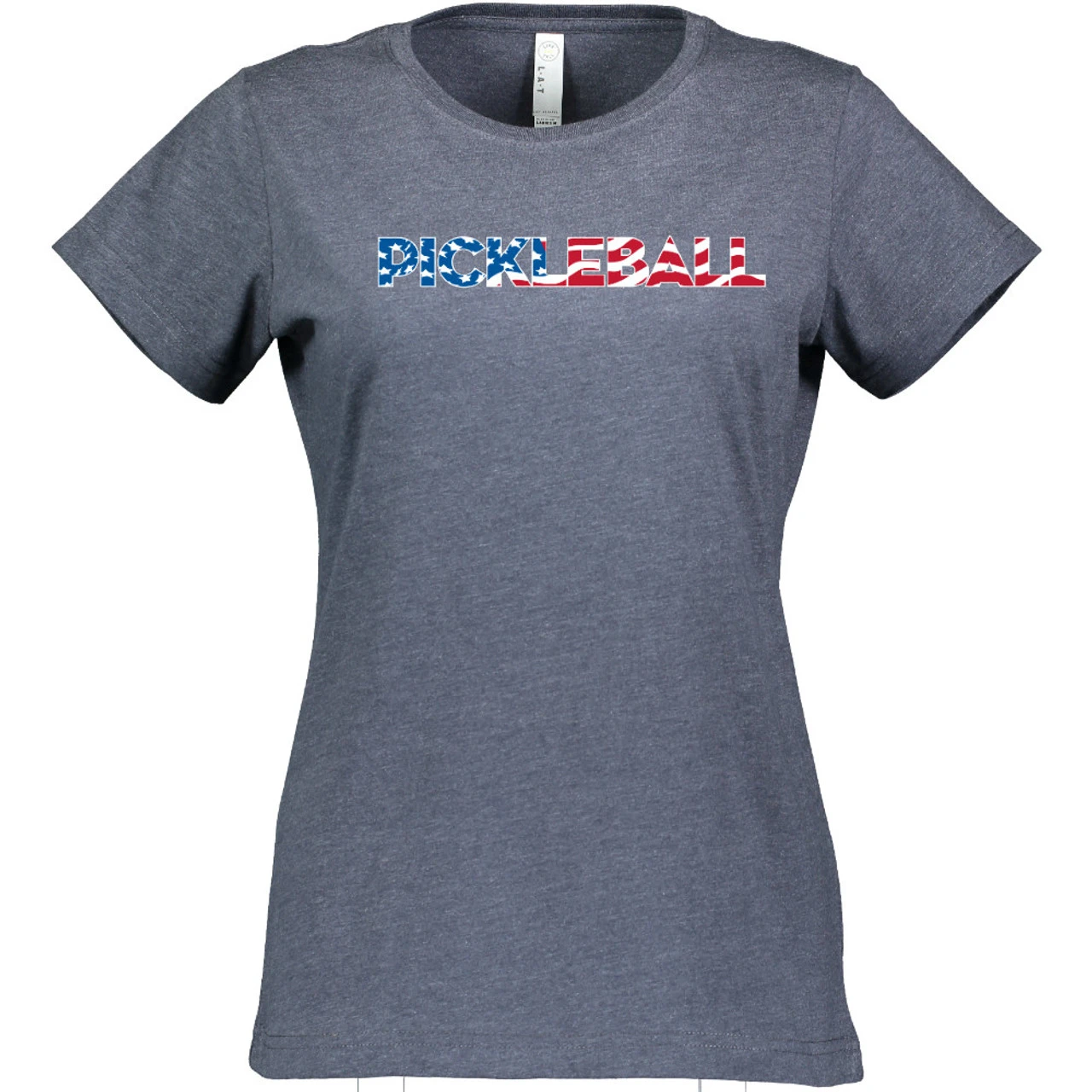 Playing on the 4th of July, entering a country-based tournament or just enjoy some patriotic flavor? This image features the American flag’s design within the word “PICKLEBALL” so you can add more flare to any game. Sits over the center front of the shirt of your choice. The short-sleeve shirt is 4.5oz cotton/poly blend (90/10 in Vintage Heather; 60/40 in all other colors) fine jersey knit with a topstitched ribbed collar. The style is semi-fitted with double-needle sleeves and bottom hem.