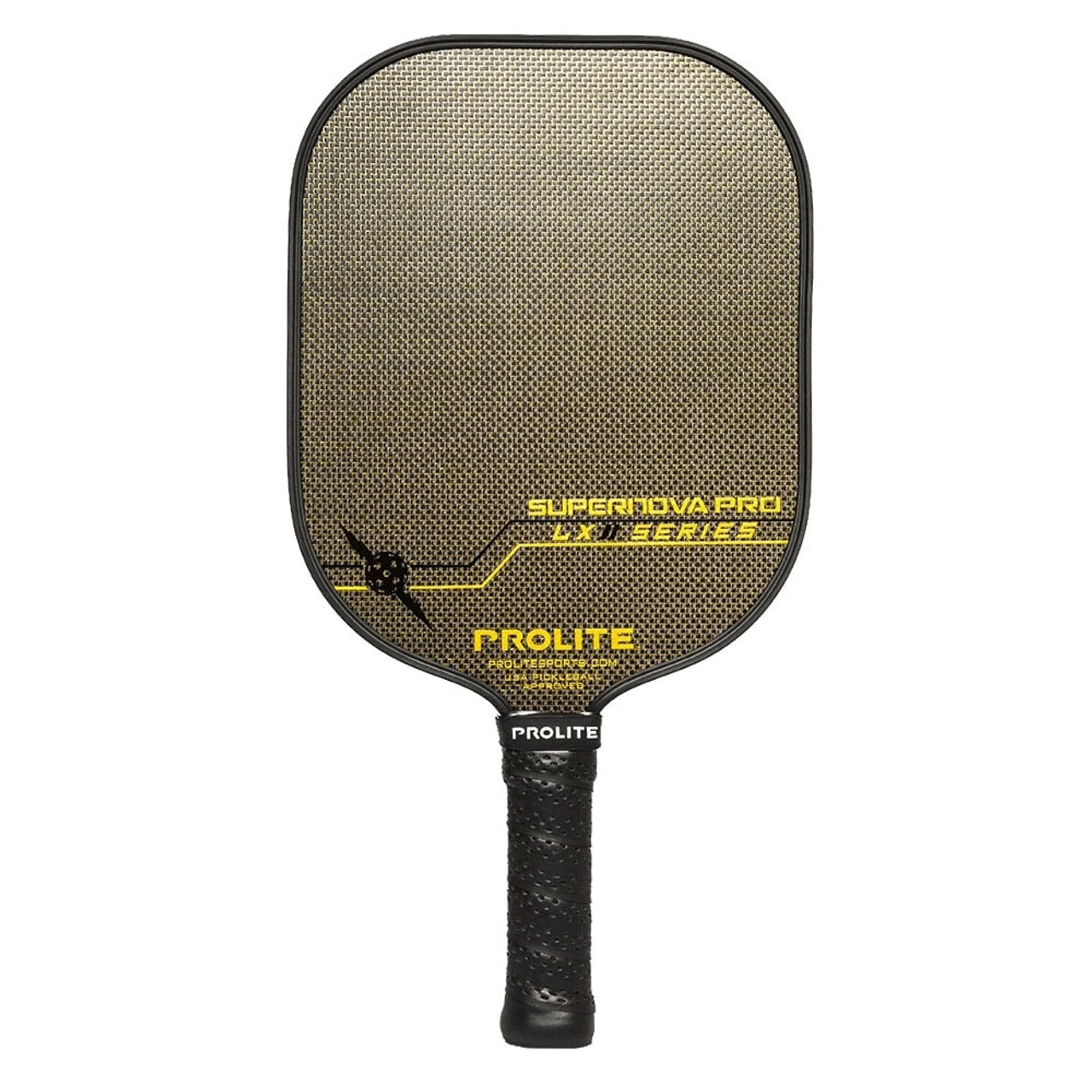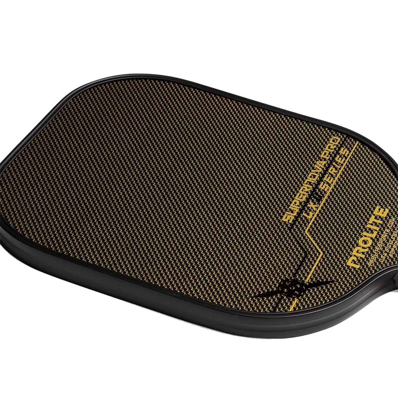 The Supernova Pro LX Pickleball Paddle is part of the next generation “Hyperweave” series from one of the original paddle brands, PROLITE. Bringing the most premium materials and fresh thinking to any paddle line they’ve ever released, PROLITE’s Hyperweave LX paddles are engineered using three layers of carbon fiber per side, as well as interwoven gold or silver fibers in the top layer (your choice) to create a pickleball paddle that looks and performs like no other. The Supernova has the capacity to be the most powerful paddle in the Hyperweave line thanks to its rounded proportions with a full 8″ width, and comparatively heavier weight. For players who desire a large surface area for blocking hard drives on defense, or the ability to blast a frozen-rope ground stroke from the baseline, the Supernova Pro LX delivers.